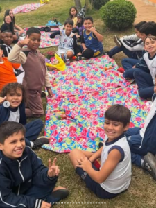 🧺 Os alunos dos 3ºs e 4ºs anos aproveitaram um delicioso piquenique ao ar livre, com direito a jogos, lanches e boas risadas.