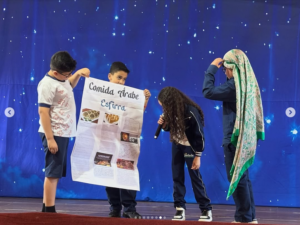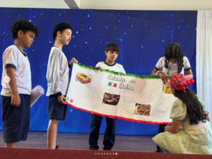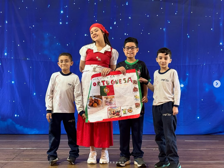 Os alunos foram divididos em grupos e cada um ficou responsável por pesquisar um povo imigrante. Para tornar o aprendizado ainda mais gostoso e dinâmico, cada grupo trouxe exemplos da culinária que esses povos trouxeram para o nosso país. 🥖🍝🍲🍣