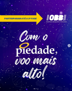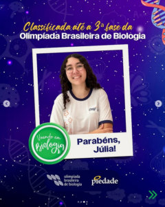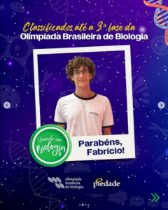 Hoje, celebramos com orgulho a conquista dos nossos talentos Fabrício e Júlia, que avançaram até a 3ª fase da OBB – Olimpíada Brasileira de Biologia! 🧬🔥