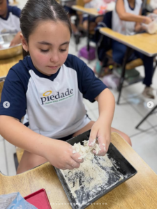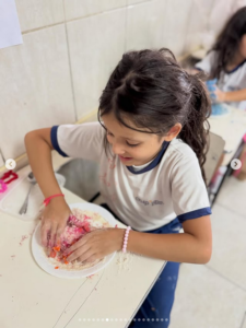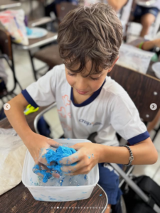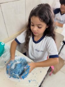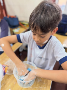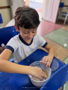 Nossos pequenos exploradores se divertiram preparando suas próprias massinhas com farinha, soltando a criatividade e aprendendo de forma prática e divertida. 💛