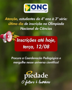 Hoje, 12/08, é o último dia para se inscrever na Olimpíada Nacional de Ciências (ONC).