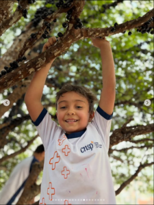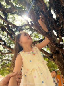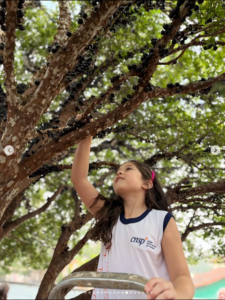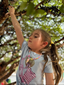 Foi emocionante ver os olhinhos curiosos brilhando, as mãozinhas colhendo jabuticabas direto do pé, e a alegria em descobrir que essa fruta tão doce e brasileira só aparece uma vez por ano. Teve surpresa, teve risada, teve criança subindo na árvore e muita conexão com o que realmente importa.